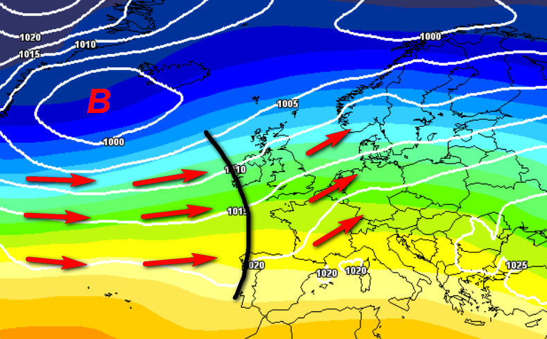 Sul finire della settimana prossima le correnti umide atlantiche inizieranno a spingere, portando un discreto campionario di perturbazioni verso l’Italia dove avremo generali condizioni di maltempo, ma in un contesto non particolarmente freddo almeno al centro e al sud.