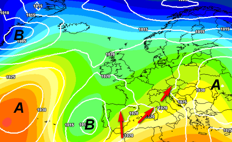 Correnti umide da sud-ovest interesseranno la nostra Penisola e determineranno un clima abbastanza umido e piovoso. Le regioni settentrionali potrebbero però mantenere il freddo intrappolato nei bassi strati; una situazione che potrebbe essere foriera di precipitazioni nevose anche a bassa quota, specie sul nord-ovest.