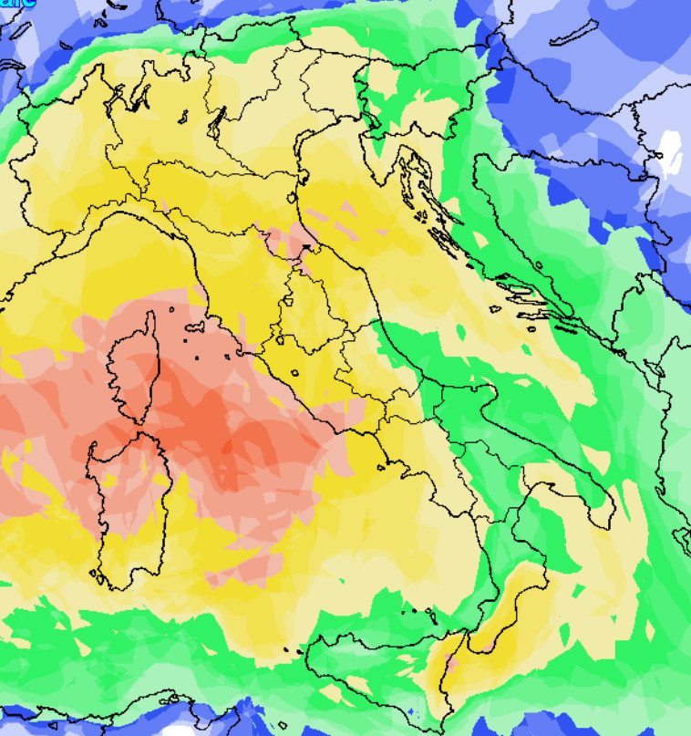 Notiamo come tutta la nostra Penisola avrà una probabilità di pioggia MEDIO-ALTA o addirittura ELEVATA laddove è visibile il colore rosso sulla mappa. Una condizione di maltempo che come anticipato potrebbe determinare cadute di neve anche a bassa quota al nord, qualora permanessero sacche di aria fredda in Pianura Padana.