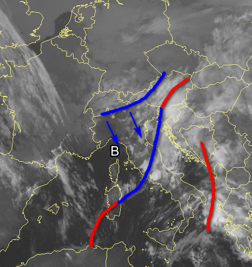 Situazione molto complessa sull’Italia. Abbiamo in sostanza due perturbazioni che nelle prossime ore si fonderanno in un unico blocco in corrispondenza delle regioni centrali. Il fronte freddo addossato alle Alpi butterà giù aria fredda verso l’Italia, con il suo moto da nord-ovest verso sud-est. Una depressione sottovento alla catena alpina si sta formando in queste ore sul Mar Ligure e si muoverà verso le regioni centrali, approfondendosi nell’arco della giornata. Insomma, tutto concorre per almeno altre 24-36 ore di MALTEMPO su buona parte del nostro Paese, segnatamente su Nord-est, al centro e al meridione, con fenomeni anche intensi e quota neve in calo. Fuori dal maltempo il nord-ovest, dove si apriranno schiarite sempre più ampie.