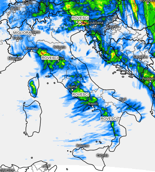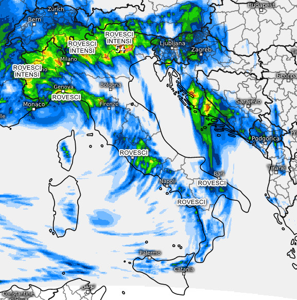 Si allenterà la morsa del maltempo sul Piemonte occidentale dove le piogge diverranno più sporadiche, ma rovesci intensi saranno ancora possibili tra alto Piemonte, alta Lombardia, Triveneto e Liguria. Rovesci anche più a sud, tra Lazio, Campania, Calabria Tirrenica, est Sicilia e Sardegna. Ancora venti forti e mari in cattive condizioni.