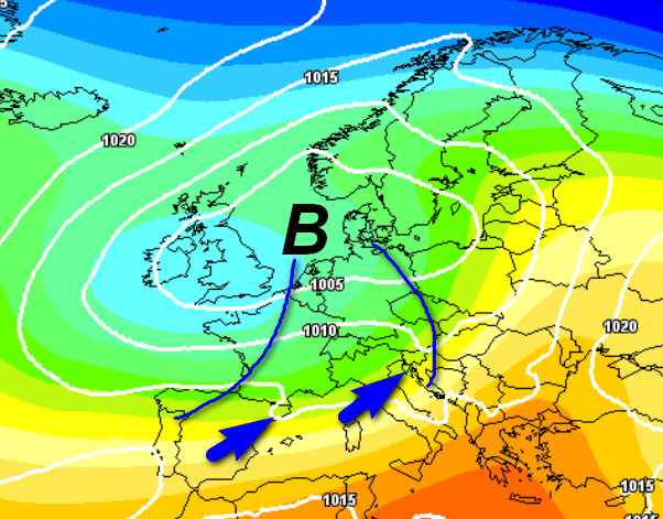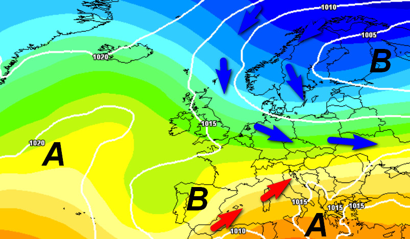Ecco la vasta e complessa depressione che dall’Europa occidentale avrà trasferito il suo minimo poco a sud della Scandinavia. Nelle sue spire resterà coinvolta anche la nostra Penisola, segnatamente le regioni settentrionali e centrali, mentre il meridione verrà in parte risparmiato dai fenomeni e godrà anche di temperature piuttosto elevate.