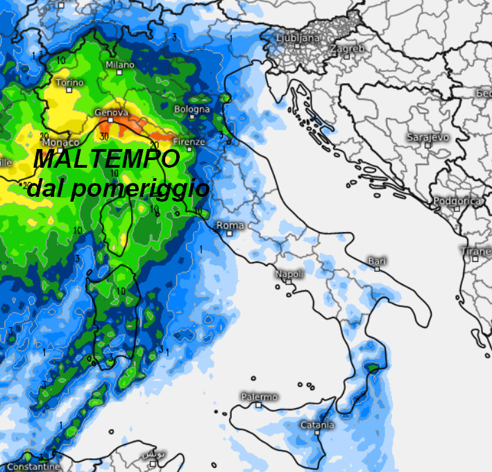 Piogge in arrivo dalla tarda serata di domenica anche su Toscana e Sardegna, mentre sul resto d’Italia sarà una domenica asciutta a parte forse qualche residuo piovasco all’estremo sud.
