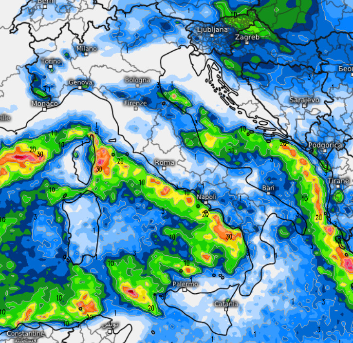 Tra lunedi e martedì una depressione al centro del Mediterraneo invierà correnti fredde verso il nord e parte delle regioni centrali, mentre altrove avremo un clima più mite anche se molto instabile.