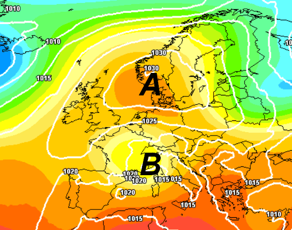 L’alta pressione sposterà il proprio baricentro verso nord e porrà un massimo in prossimità della Scandinavia. Più a sud, in direzione dell’Europa centrale e dell’Italia, avremo una vasta depressione che sarà centrata in prossimità delle nostre regioni settentrionali. Il movimento rotatorio delle correnti imporrà un tempo instabile da nord a sud con fenomeni anche intensi.