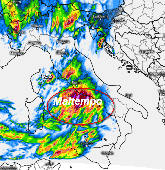 Rovesci su gran parte d’Italia, ma in modo particolare al centro, sulla Campania, la Calabria Tirrenica e il nord della Sicilia. Rovesci anche al nord, specie su Liguria, alte pianure, fascia alpina e prealpina. Meno frequenti i fenomeni sulla medio-bassa Padana. Temperature in calo ovunque.