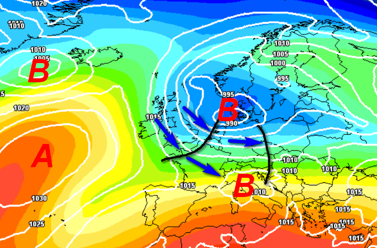 L’Italia verrà interessata da un flusso di correnti da nord-ovest. L’arco alpino formerà una depressione sottovento alla chiostra montuosa, chiaro segnale di tempo instabile su parte del centro, ma soprattutto al meridione e sulle Isole. L’alta pressione starà “di quinta” sul Vicino Atlantico senza intervenire in maniera diretta sull’Italia, almeno per il momento.
