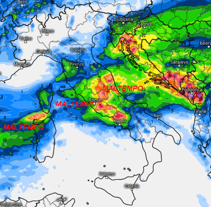 Il MALTEMPO di sabato 25 e domenica 26: le aree colpite