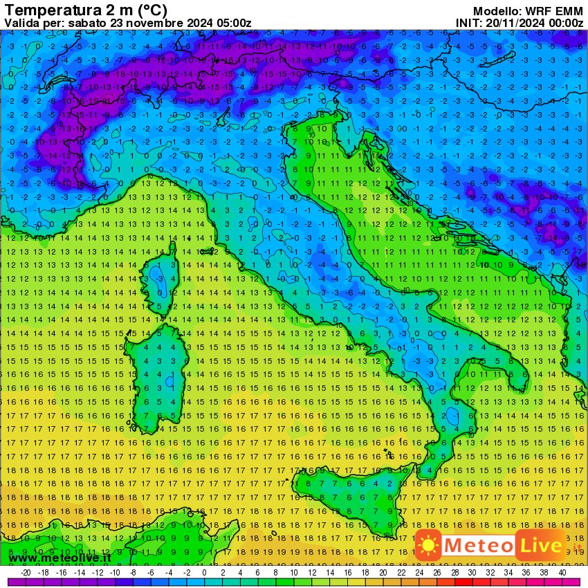 Infine, queste sono le temperature al suolo attese in Italia nella prima mattinata di sabato, attorno alle ore 6: