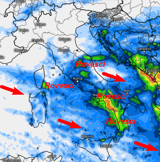 I rovesci più intensi sono attesi tra la Campania e la Calabria Tirrenica, ma qualche acquazzone non si esclude sulla Sardegna, sulla Sicilia e nelle aree interne dell’Italia centrale. Il nord verrà saltato quasi completamente se si eccettua qualche pioviggine sulla Liguria limitata alla giornata di domenica 14 gennaio.