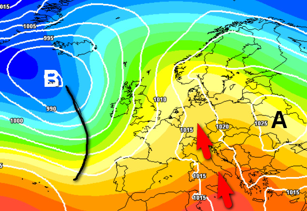La zona di alta pressione si ergerà sui settori orientali del Continente, mentre sul vicino Atlantico si rinnoveranno condizioni perturbate con depressioni e perturbazioni. L’Italia si troverà nel mezzo e verrà interessata da correnti umide meridionali che rinnoveranno condizioni piovose al nord e su gran parte delle regioni centrali.