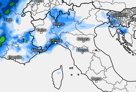 Sabato 25 gennaio richiamo umido su Liguria, Canton Ticino e Lombardia con un po’ di pioggerella tra il debole e il moderato, anche sottoforma di pioviggine, in esaurimento prima di sera.