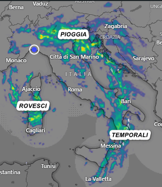 Le piogge più intense sono in atto tra il nord-est e le aree interne del centro. Abbiamo anche rovesci sulla Sardegna, nevosi oltre i 1000 metri. Temporali al sud, specie sulla Calabria, mentre al nord-ovest piove ancora a tratti, ma la situazione dovrebbe migliorare il giornata.