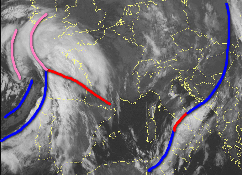 Sul nostro continente continua un treno di perturbazioni indotto dalle correnti umide e perturbate di matrice oceanica. La vecchia perturbazione insiste oggi su parte del centro e al meridione, mentre sulla sinistra della foto di nota una nuova perturbazione che sarà a ridosso del settore di nord-ovest nella giornata di giovedi 30 gennaio.