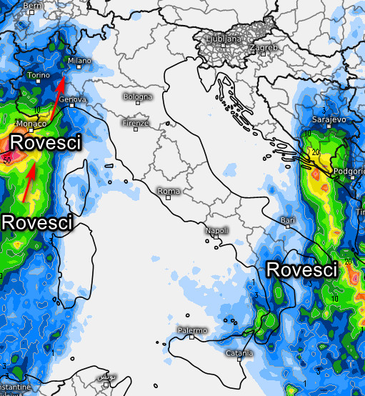 Infine, questa è la sommatoria delle precipitazioni attese in Italia nell’arco della giornata di giovedi 30 gennaio: