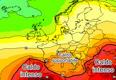 Le temperature saranno nel complesso sopportabili da nord a sud, senza picchi eccessivi. Il caldo più intenso verrà marginalizzato e confinato alla Penisola Iberica, al Nord Africa e nelle immediate vicinanze dell’Egeo.