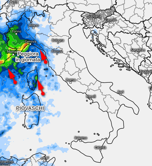 Infine, queste sono le piogge attese in Italia nell’arco della giornata di venerdi 21 marzo:
