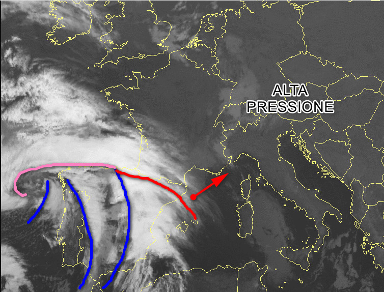 Ecco la zona di alta pressione che interessa la nostra Penisola ed i Paesi dell’Europa centro-orientale dove il cielo si presenta sereno. Sulla Penisola Iberica avanza una complessa area di maltempo che presenta diversi impulsi perturbati al suo interno. La prima perturbazione sarà sul settore di nord-ovest nella serata di venerdì con piogge anche piuttosto intense sulla Liguria. La seconda perturbazione visibile al momento sul Portogallo, raggiungerà il centro-nord domenica 23 marzo. Insomma, dopo la breve fase soleggiata di questi giorni prepariamoci ad altre fasi di maltempo che in un primo tempo interesseranno il centro-nord, poi anche il meridione.
