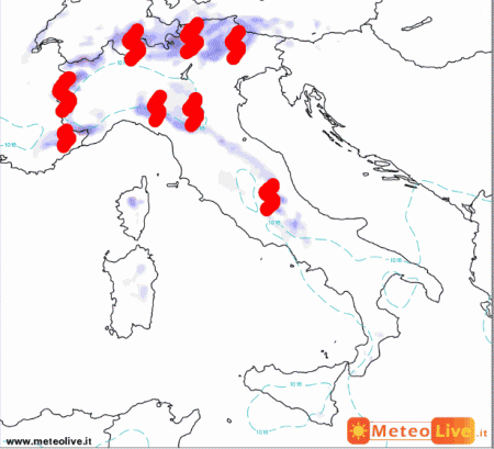 I temporali in pianura dovrebbero dissolversi non appena il sole inizierà a scaldare. Focolai temporaleschi si adageranno nel pomeriggio sulle Alpi e l’Appennino centro-settentrionale. Si tratterà dei classici temporali estivi di calore che si dissiperanno al calare del sole. Altrove sole e caldo.