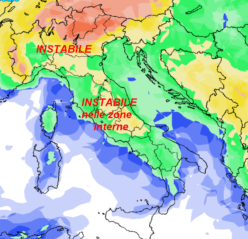 Notiamo come la probabilità di pioggia maggiore tenderà a concentrarsi al nord e nelle aree interne dell’Italia centrale. Sulle Isole, il basso Tirreno e al sud avremo una probabilità di pioggia più bassa e conseguentemente condizioni meteo migliori, con prevalenza di schiarite.
