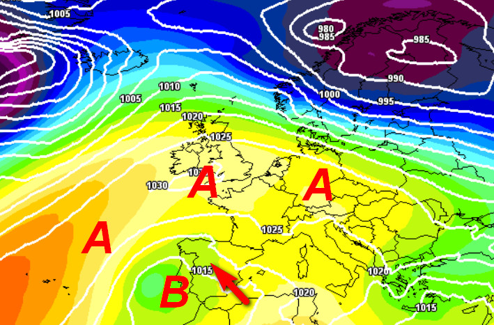 Il temporaneo rinforzo del getto alle alte latitudini farà stirare l’alta pressione verso l’Europa centrale e l’Italia. In altre parole, il tempo dovrebbe migliorare su quasi tutta l’Italia con temperature freddine al mattino e decisamente miti durante il giorno. Non mancheranno banchi di nebbia che saranno presenti di notte e al primo mattino sulle pianure del nord e nelle vallate interne del centro, ma in rapido dissolvimento entro metà mattinata con l’incedere del soleggiamento.