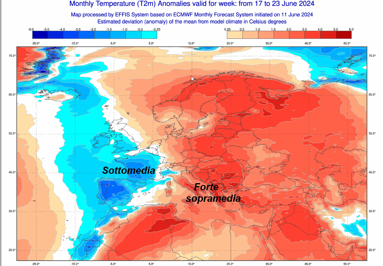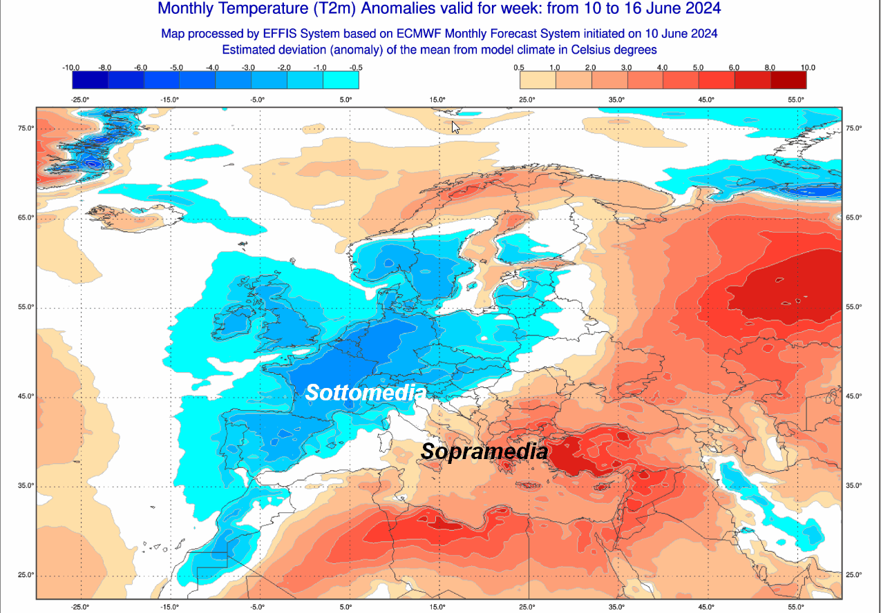 Iniziamo con la ANOMALIE TERMICHE attese sul nostro Continente fino a DOMENICA 16 GIUGNO: