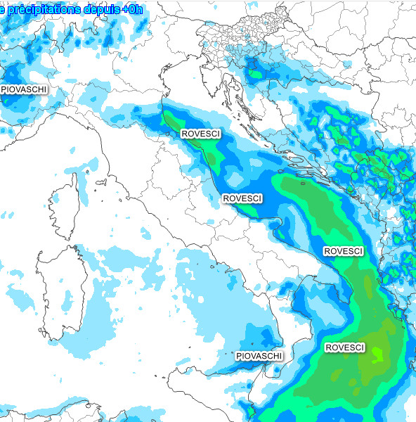 Ecco dove si concentreranno le piogge fino alla mezzanotte prossima in Italia: