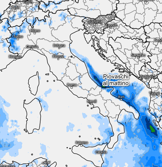 Gli ultimi rovesci bagneranno ancora diverse aree del versante adriatico, ma si tratterà di un’azione residua che tenderà a scemare in serata. Rovesci e qualche temporale anche sullo Ionio e la Puglia. Su tutte le altre regioni tempo asciutto a parte qualche piovasco sul Piemonte occidentale nel pomeriggio.