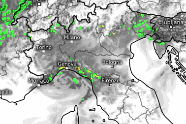 Si nota che la nuvolaglia andrà ad interessare anche la Liguria e l’alta Toscana, dove andrà a generarsi un piccolo minimo di pressione, poiché si avvertirà il richiamo di aria umida dal mare per l’avvicinamento di un fronte atlantico, con associate deboli piogge o rovesci isolati qua e là.