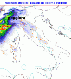 PEGGIORA: un sistema frontale sta per raggiungere il nord-ovest e il nord della Sardegna, spingendosi in serata verso il resto del nord e coinvolgendo anche Toscana, Umbria, Marche e il nord del Lazio. Attesi accumuli di pioggia anche rilevanti sul settentrione, specie a ridosso dei rilievi.
