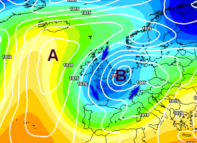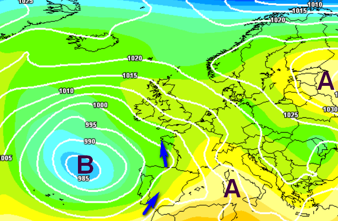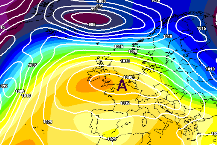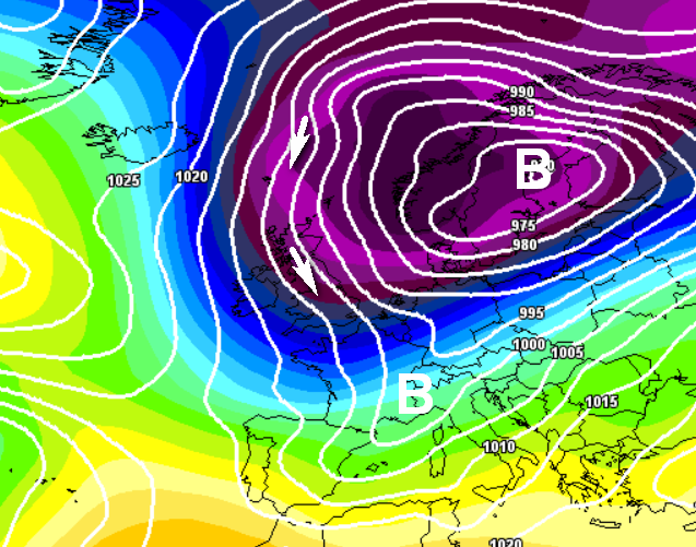 Andiamo con ordine però: con la fine di ottobre il modello prevede il primo vero scambio di calore tra nord e sud del Continente, con un’irruzione fredda che lascerebbe il segno sino ai primi di novembre, portando anche della neve su Alpi ed Appennini sino alle quote medie, qui lo schema barico previsto: