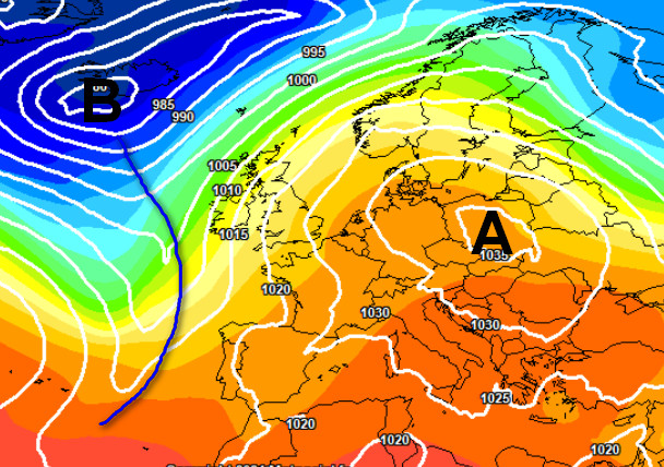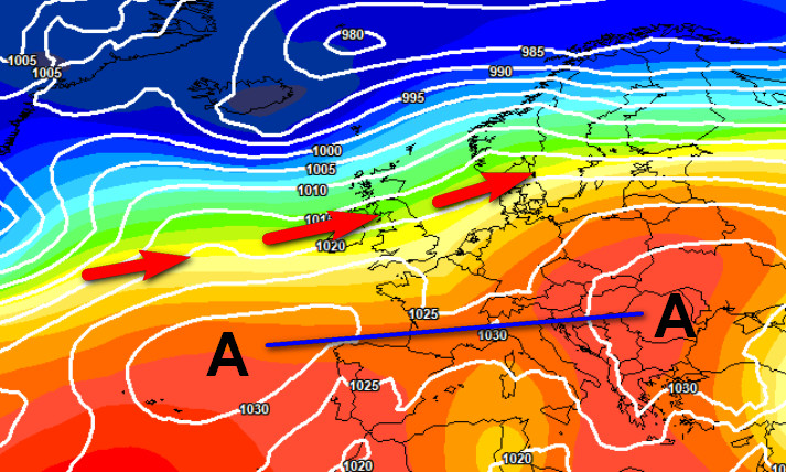 Due massimi di alta pressione che si tengono per mano con un asse passante per l’Europa centrale. Questa situazione sbarrerà temporaneamente la strada alle perturbazioni che saranno obbligate a scorrere più a nord, lungo un asse disposto dalle Isole Britanniche alla Scandinavia. In Italia il tempo sarà nel complesso buono e mite di giorno, con la presenza di nebbie sulle pianure di notte e al primo mattino, in veloce dissolvimento al sorgere del sole.