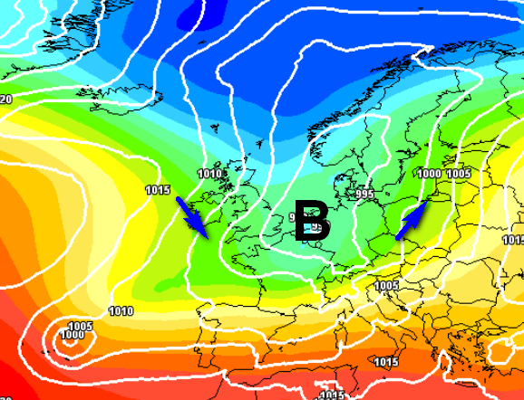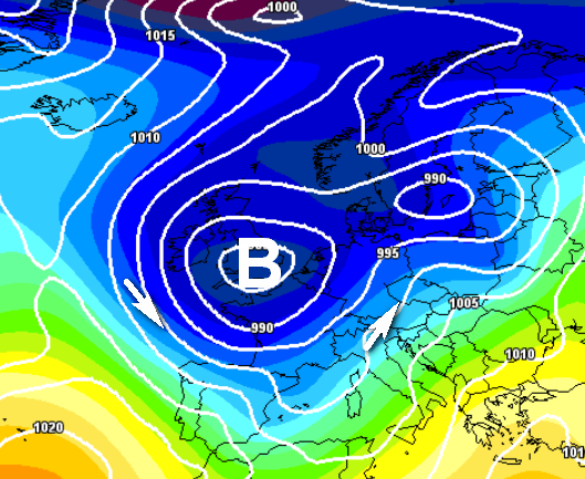 In ottobre le proiezioni di qualche modello ipotizzano un ritorno dell’anticiclone molto netto, ma poi da novembre, proprio questo accumulo di freddo al Polo e la risalita di aria mite verso il nord del Continente potrebbero provocare alcuni episodi di affondi perturbati e piovosi, peraltro in linea con la stagione autunnale, per poi ripetersi sino quasi a Natale, come vediamo qui sotto (proiezione puramente indicativa):