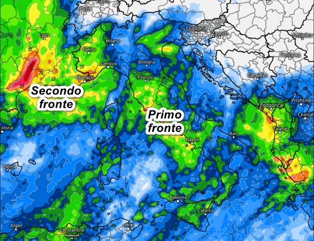 Ecco i due fronti che quasi si tamponeranno sull’Italia, anche se saranno separati da un breve intervallo dove il tempo non migliorerà, ma smetterà di piovere per alcune ore. Il secondo fronte sarà comunque più intenso e si farà sentire sull’Italia soprattutto mercoledi 27 marzo.