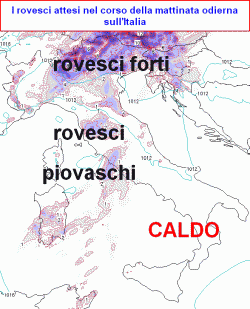 Impulso temporalesco in transito al nord, piovaschi anche al centro, caldo al sud