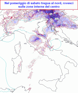 Al nord rovesci in movimento da ovest verso est, seguiti da qualche schiarita. Locali piovaschi o rovesci anche al centro, al sud soleggiato e caldo. Domenica temporali in movimento dalla Lombardia al Triveneto, un po' di nuvolaglia anche al centro. Da lunedì a mercoledì ancora tempo molto instabile al nord, a tratti coinvolto anche il centro, più fresco. Da metà mese sole e caldo per tutti.