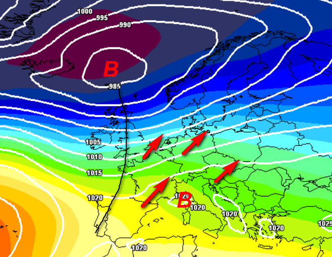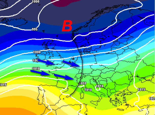 Ecco il taglio maggiormente nord-occidentale delle correnti a portare aria moderatamente più fredda sulla nostra Penisola. In altre parole, il limite delle nevicate potrebbe calare al nord e su parte delle regioni centrali fino a quote più interessanti, in accordo con una situazione di complessiva instabilità sulla nostra Penisola.