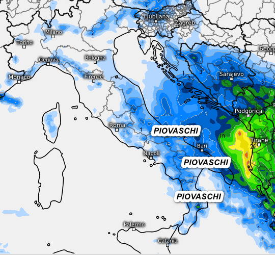 Il corpo nuvoloso interesserà essenzialmente l’estremo nord-est, il medio-alto Adriatico e le aree interne dell’Italia centrale con alcuni rovesci. Lungo il Tirreno avremo piogge nettamente più deboli, spesso sottoforma di pioviggini tra la Liguria, la Toscana e tra la Campania e la Calabria Tirrenica. Tempo in genere soleggiato sulle Isole. Quadro termico sempre molto mite, in parziale contrazione nelle aree raggiunte da eventuali piogge o rovesci.