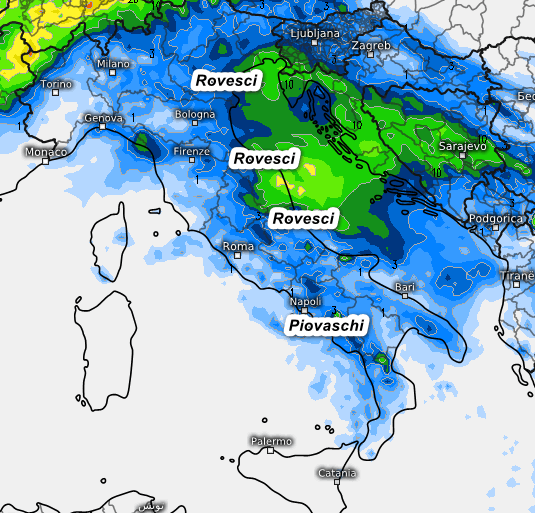 Questa invece è la sommatoria delle precipitazioni attese in Italia nell’arco della giornata di martedi 19 marzo: