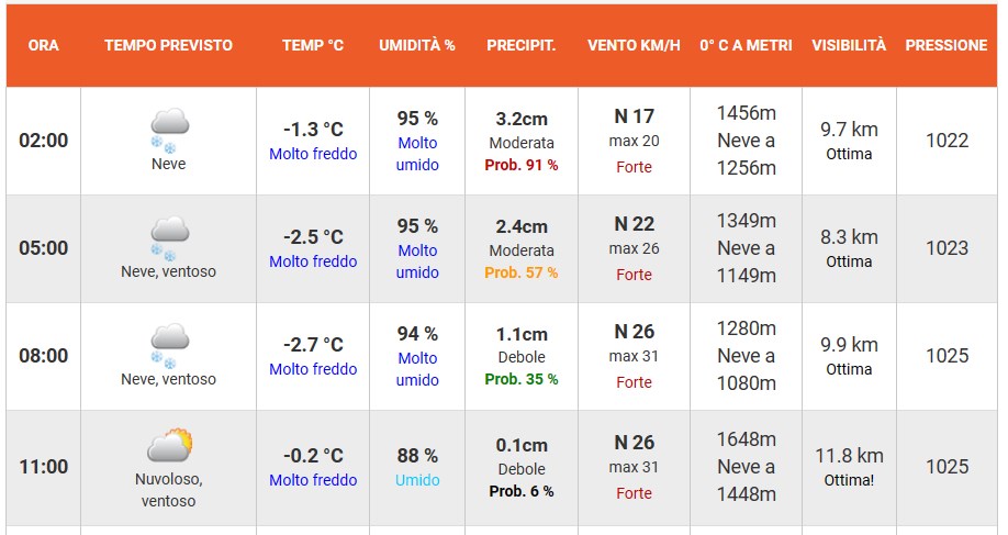 Rovesci e temporali su gran parte del settentrione, con temperature in calo e ritorno della neve sulle Alpi oltre i 1500-1700 metri. Ecco infatti la nostra previsione computerizzata per Livigno (1800m) per mercoledì 10 (Previsione Meteo Livigno- MeteoLive.it):