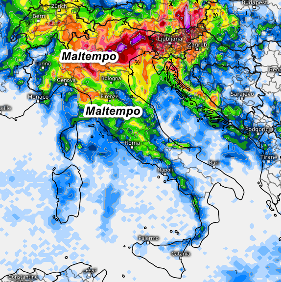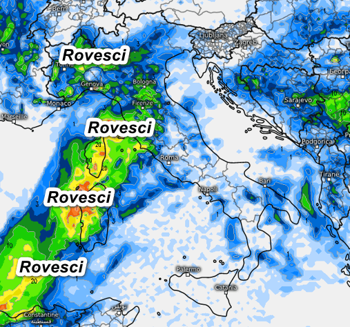 Praticamente tutto il settentrione italiano e gran parte delle regioni centrali saranno sotto precipitazioni intense ed anche di tipo temporalesco. La situazione tenderà ad aggravarsi nelle zone già martoriate dai nubifragi dei giorni scorsi e potrebbe divenire nuovamente delicata. Al sud e sulle Isole piogge decisamente più sporadiche ed accompagnate anche da spazi soleggiati.