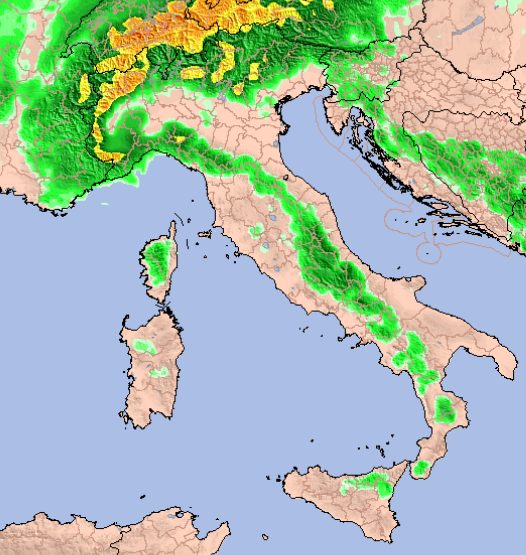 E di conseguenza quelle nevose con la sommatoria dei fenomeni tra domenica 21 e martedì 23 aprile, notate in verde come la neve si spinga sulla pianura piemontese e invada i fondovalle alpini ed appenninici, forse eccessiva invece la lettura della neve sin sul mare sulla costa ligure, abbondanti anche le nevicate sull’Appennino abruzzese e laziale: