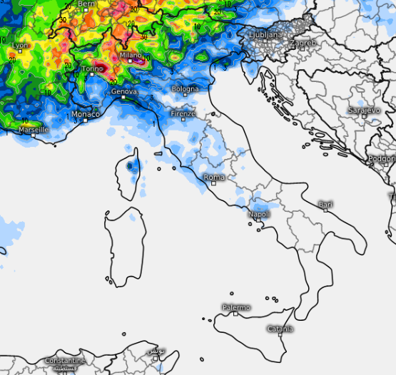 Ed ecco le conseguenze sul territorio in termini di precipitazioni, con il settentrione colpito da temporali anche violenti in movimento sulla Valpadana da ovest verso est e accompagnati da venti forti e un deciso calo termico: