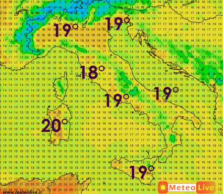 FASE STABILE: tra mercoledì e sabato fase stabile con temperature in progressivo rialzo e valori sin oltre i 20°C da giovedì in poi. Qui le massime previste per mercoledì 17 aprile: notate già la grande mitezza presente sul catino padano e nelle zone dell’immediato entroterra delle isole, delle regioni centrali tirreniche e della Puglia: