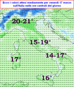 ALTA PRESSIONE: la sua tenuta è stata oggi ridimensionata dal modello americano che ne prevede una graduale implosione già dal fine settimana e soprattutto per l’inizio della prossima. Essa riuscirà comunque a determinare ancora giornate miti sino a lunedì 20 marzo. In particolare venerdì 17 e sabato 18 le temperature al nord potranno facilmente