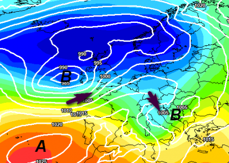 E che dire del sabato 15 quando un altro bel vortice potrebbe avvicinarsi alle Alpi, ancora una volta il fronte sembra destinato a portare qualche pioggia passeggera della durata di poche ore tra nord-est, centro e poi sud, lasciando il posto subito dopo all’arrivo del Maestrale secco, la sequenza è evidente: