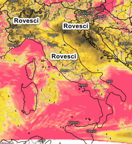 Una schiera di rovesci e temporali fungono da tracciante per un richiamo di correnti umide al suolo tra est e sud-est che si diparte dall’Adriatico verso le pianure del nord. Su tutte le altre regioni il tempo risulta buono o con nubi di poco conto. Questa situazione si manterrà inalterata per quasi tutta la mattinata, mentre nel pomeriggio i temporali si trasferiranno sui rilievi del nord e nelle aree interne del centro con un miglioramento che dovrebbe intervenire sulle pianure.