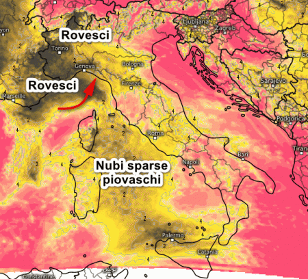 Nuovo corpo nuvoloso in risalita verso il nord-ovest con rovesci e temporali anche forti tra Liguria e basso Piemonte. Nubi sparse sul resto d’Italia, specie sul Tirreno e la Sardegna dove non si escludono isolati piovaschi, per il resto schiarite prevalenti.