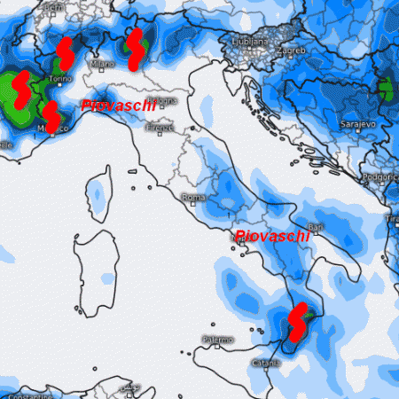 Dopo una mattinata in prevalenza soleggiata, il pomeriggio porterà qualche temporale sulle Alpi con basso rischio di sconfinamenti sulle pianure. Qualche temporale sarà possibile anche sulla Calabria, unitamente a brevi piovaschi sull’Appennino Ligure e centrale.