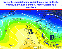 Dopo un ottobre che potrebbe portare qualche pioggia, specie al nord, con fenomeni però nel complesso non abbondanti e in un contesto mite, novembre prenderebbe già una piega precocemente invernale lungo il versante adriatico e sul meridione, dove cadrebbero le prime nevicate a quote basse, ma non ancora pianeggianti.